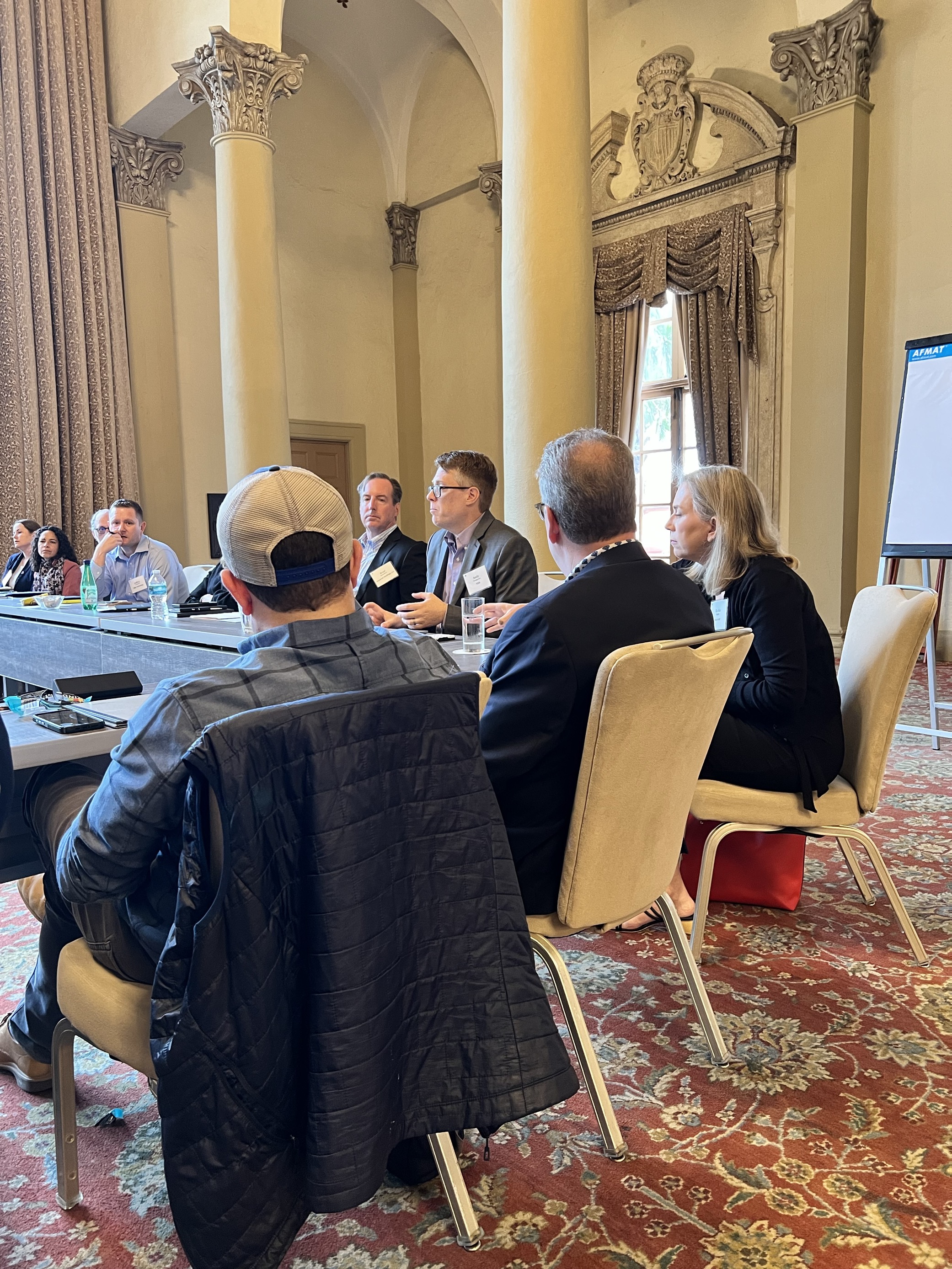 Andy engaged the 30+ attendees gathered around the table and enabled the group to discuss their challenges, and, in some cases, how those challenges are being handled in other law departments. From the group discussion, it was clear that AI was a concern and a savior for many. Budgeting, RFPs, and new pricing models for outside counsel law firms were of interest and getting back to the basics was the answer for some.